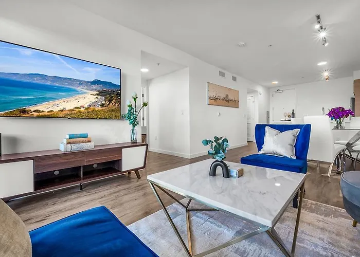 Das 116 m² große Luxury By The Beach With Pool, Gym, Game Room Los Angeles liegt nur 6 Minuten Fußweg vom Colorado Center entfernt und verfügt über ein Fitnessstudio. Dieses Apartment liegt im Stadtteil Santa Monica von Los Angeles und bietet eine Terrasse und Blick auf die Stadt.